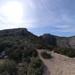 In de andere richting ligt de *Sierra del Castell de la Solana*, een stiller en minder bekend gebied dat juist daardoor perfect is voor wie van pure rust en ongerepte natuur houdt. Hier groeien steeneikenbossen, en de paden slingeren langs verlaten boerderijen en over eeuwenoude muilezelroutes. De geur van tijm en lavendel vergezelt je hier op elke stap.