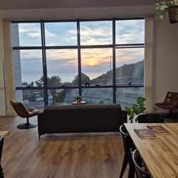 De eerste werkdagen waren leuk, uiteraard erg veel informatie dus wel vermoeid na twee dagen informatie opslurpen en op en neer naar Alicante rijden. De locatie in Alicante is prachtig aan de kust, hiernaast een plaatje met het uitzicht in de kantine net nadat de zon zich boven de Middellandse Zee had verheven.