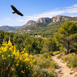De fauna van Sierra Escalona is opvallend rijk. Vooral voor vogels is dit gebied van groot belang. Het landschap biedt ruimte aan roofvogels zoals de buizerd, de slangenarend, de havik en de dwergarend, terwijl ook de havikarend in het gebied is gemeld als broed- of rustvogel van bijzondere waarde. Dat is een van de redenen waarom Sierra Escalona al langer als vogelbeschermingsgebied van groot belang wordt gezien. Maar het leven beperkt zich hier niet tot de lucht. In de struiklagen en open boszones leven konijnen in grote aantallen, en juist die vormen de voedselbasis voor veel roofdieren en roofvogels. Daarnaast komen er zoogdieren voor als vos, genetkat, das en verschillende kleine marterachtigen. Reptielen horen even goed bij dit landschap: slangen, hagedissen en gekko’s profiteren van de warme stenen, open plekken en droge bermen. Wie in alle stilte wandelt, merkt dat de natuur hier niet luidruchtig is, maar juist subtiel aanwezig: een snelle schaduw boven het pad, geritsel in het struikgewas, of de diepe roep van een uil in de schemering.